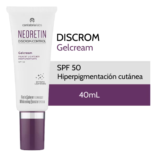 Neoretin Discrom Gelcrem SPF50 Uso Día: Envase conteniendo 40 ml. Neoretin Discrom Serum Booster Fluid Uso Día y/o Noche: Envase conteniendo 30 ml.